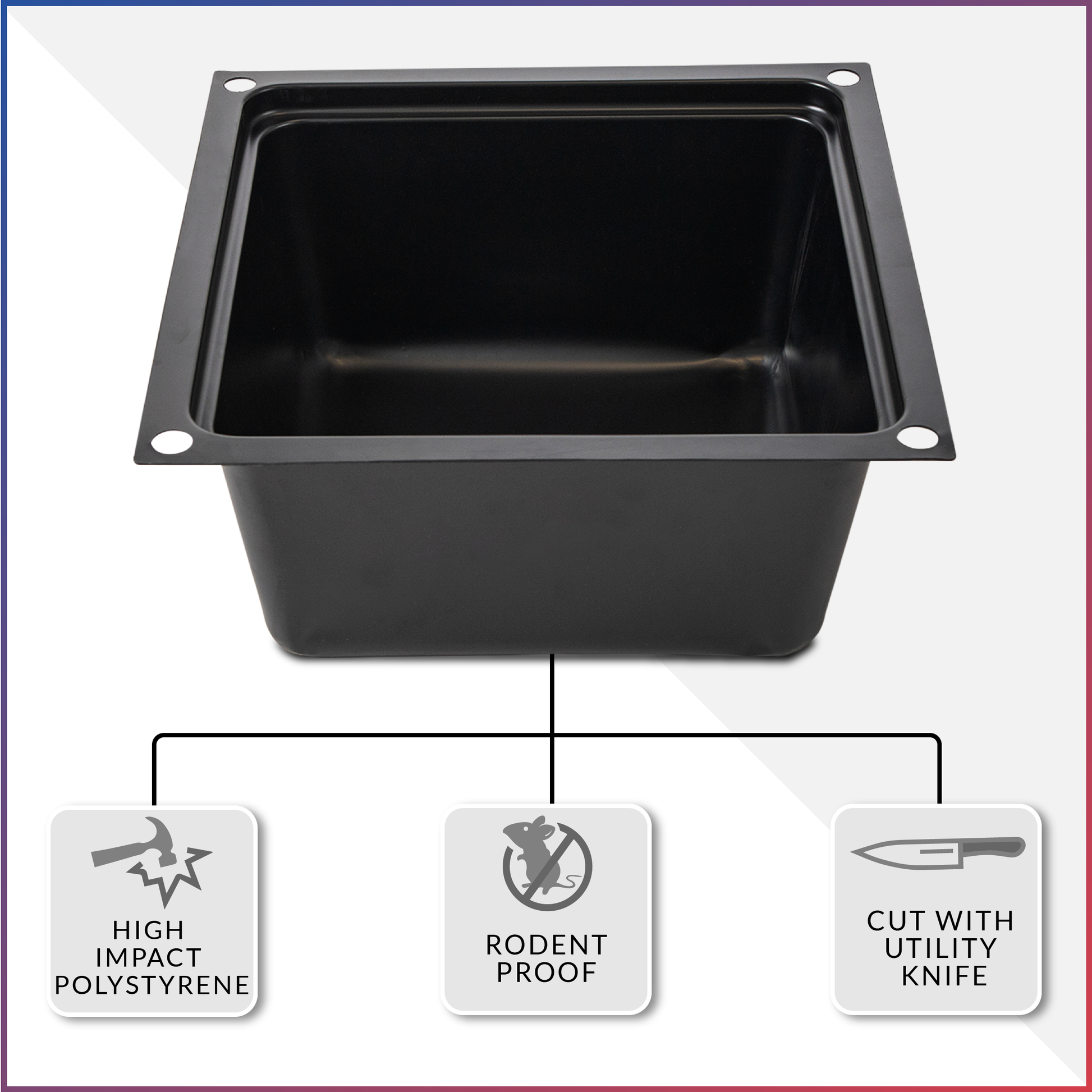 Deep Black plastic utility tub ID 13" x 13" x 7", OD 15"x15"x7" for in cavity setting or general use (12-pk)