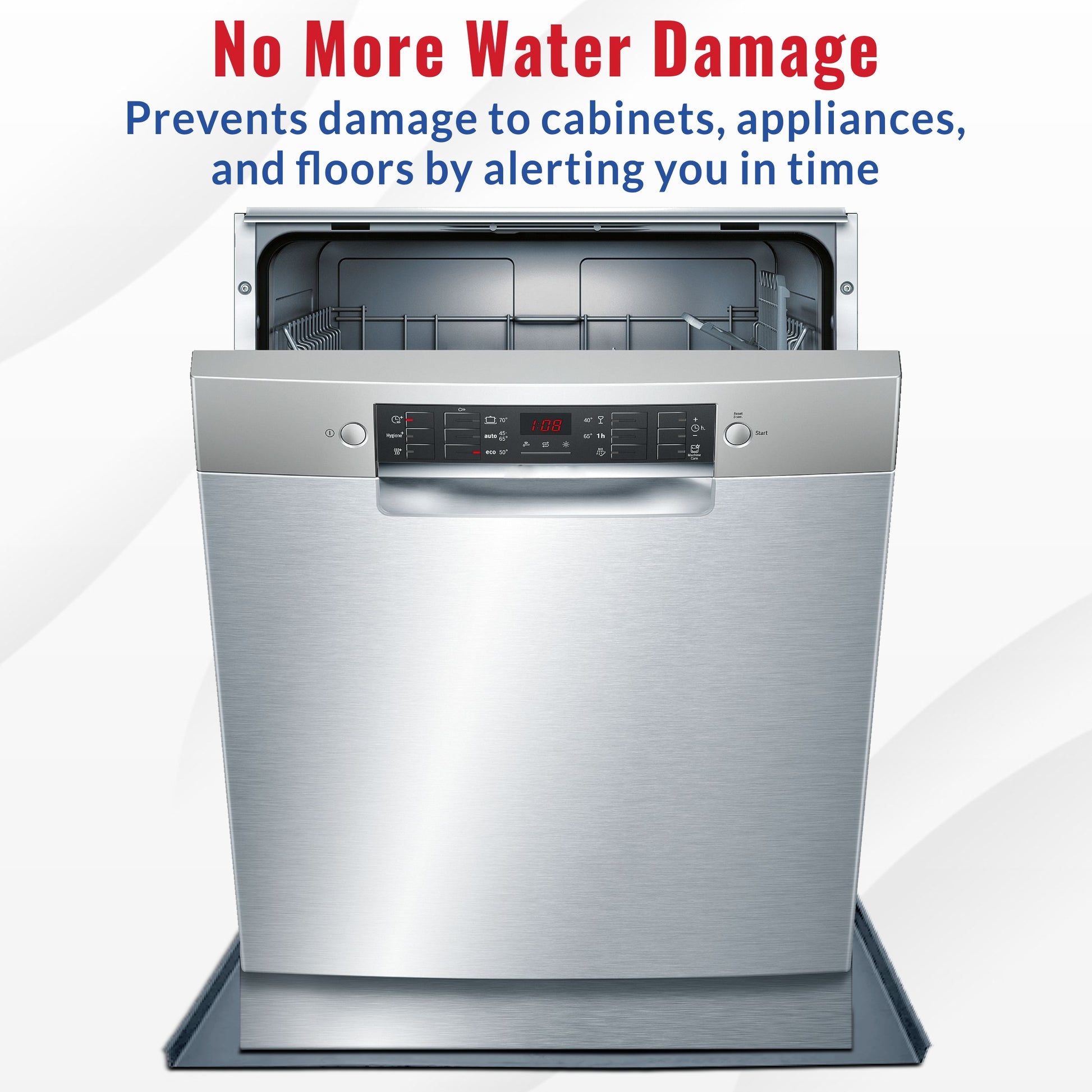 American Built Pro dishwasher leak pan protects your floor and cabinets from dishwasher leaks, water condensation, and hose failure. Protect your expensive floor, cabinets, and equipment from water damage with early warning from our dish washer drain pan.