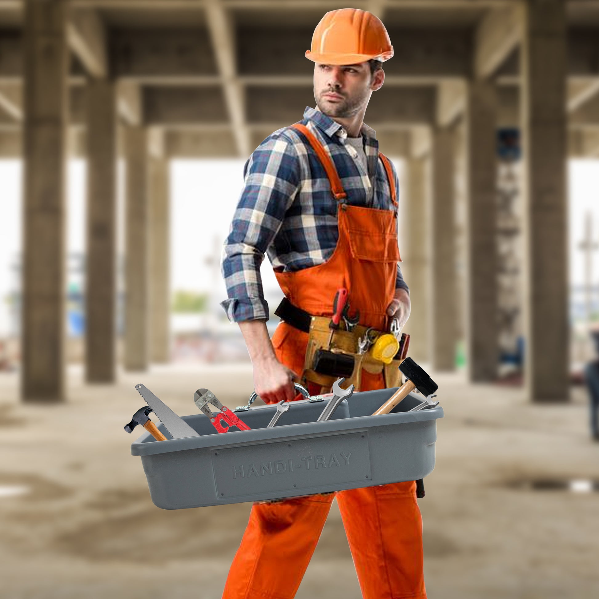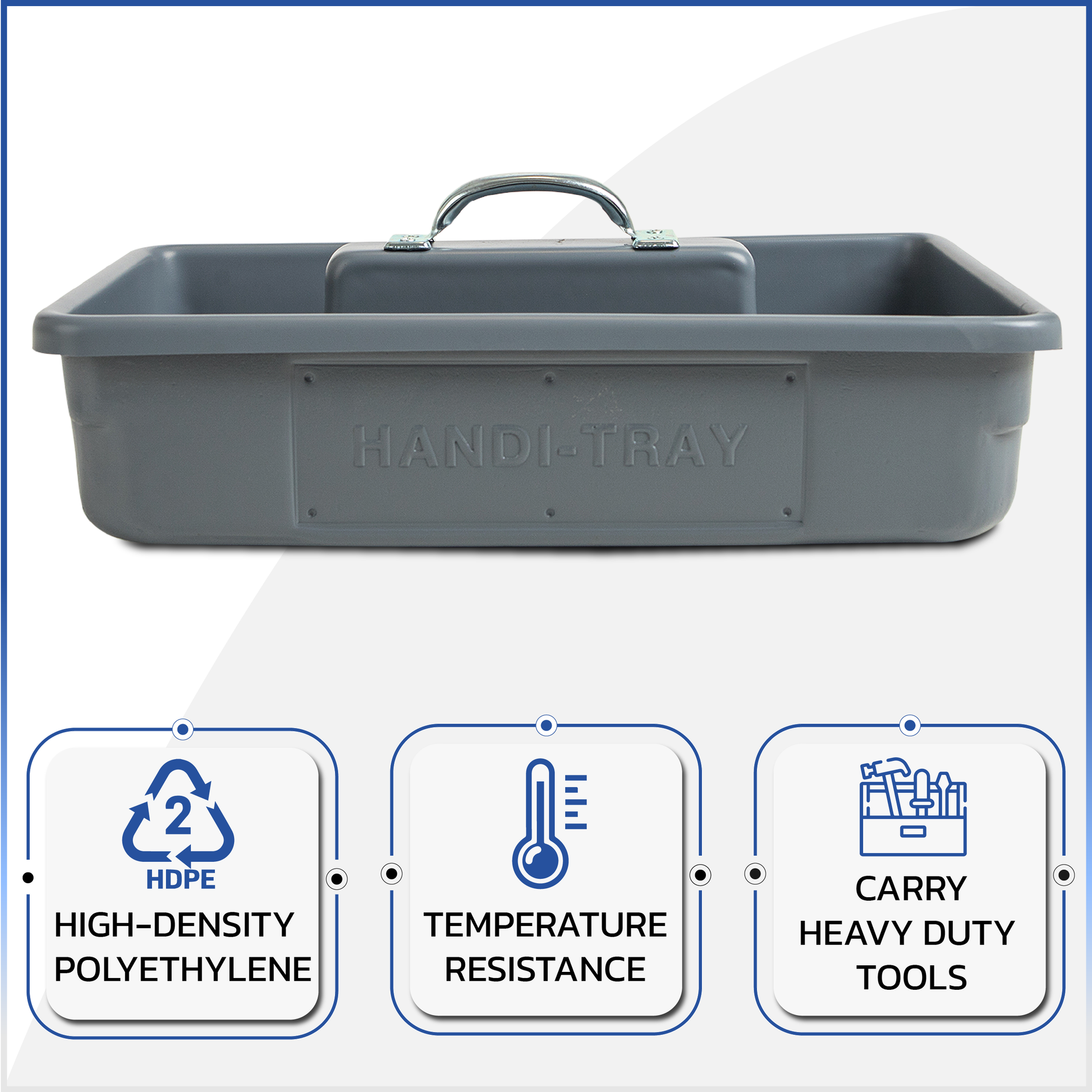 Pro-grade medium sized 18"x12.5"x6" Tote/tool Tray HDPE with reinforced handles, gray