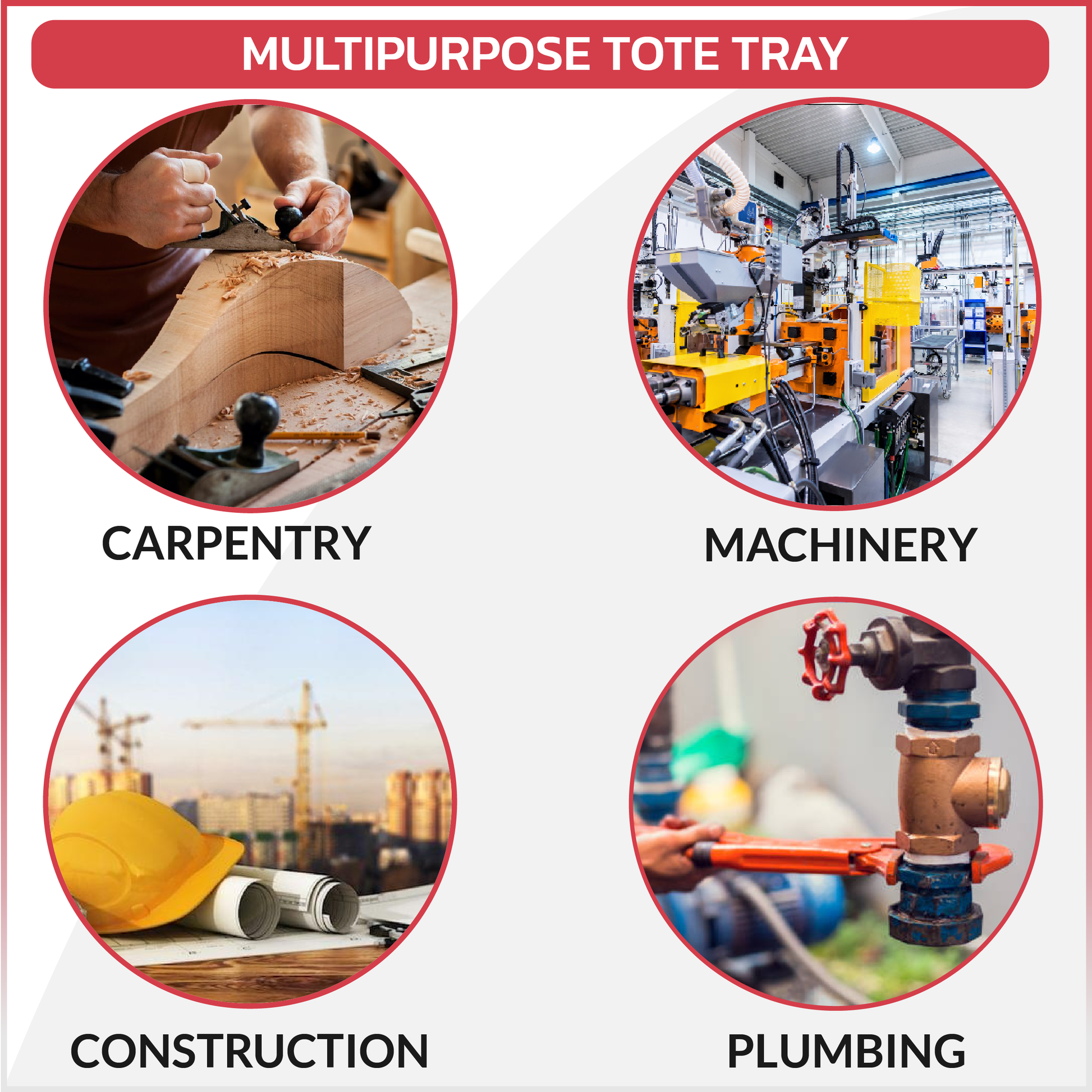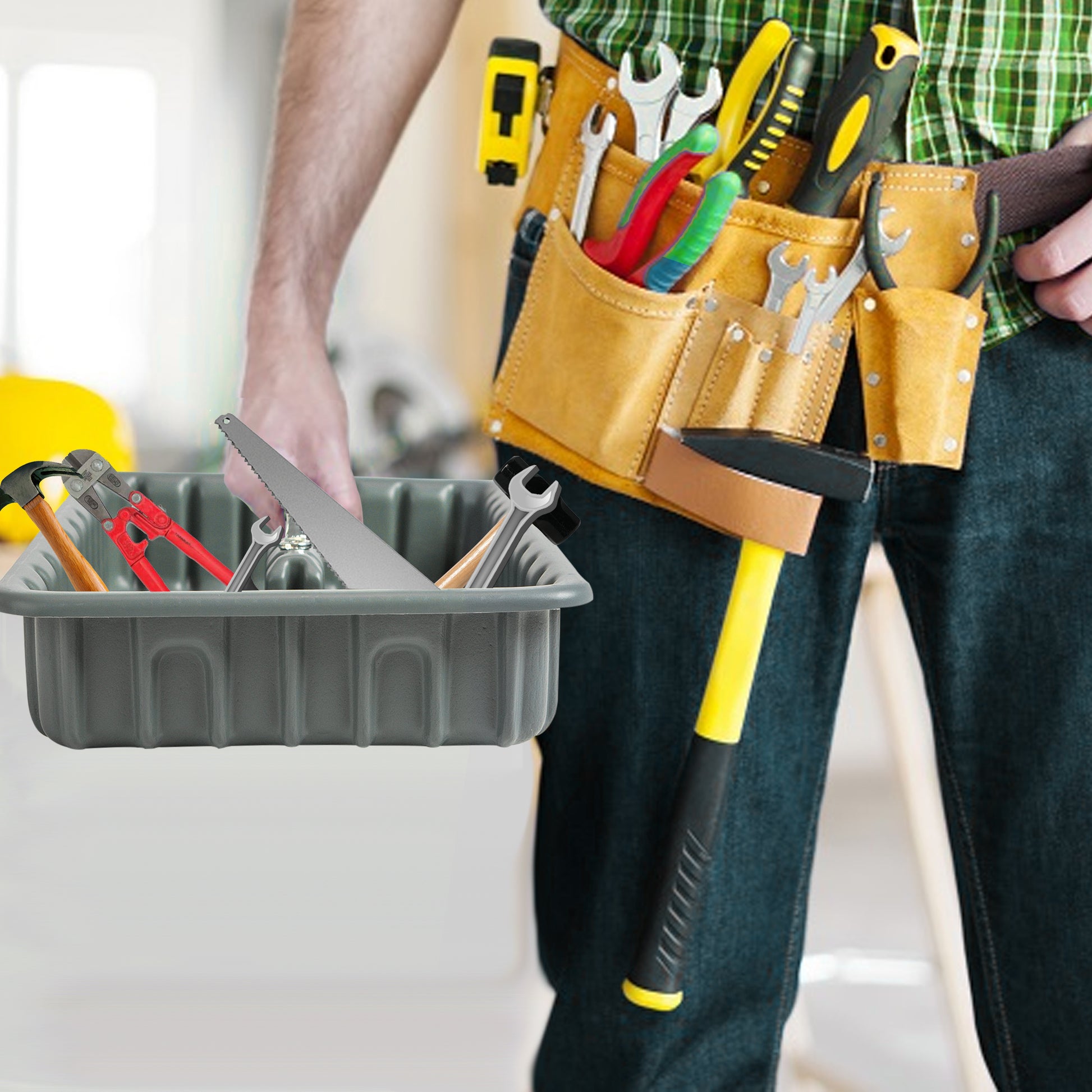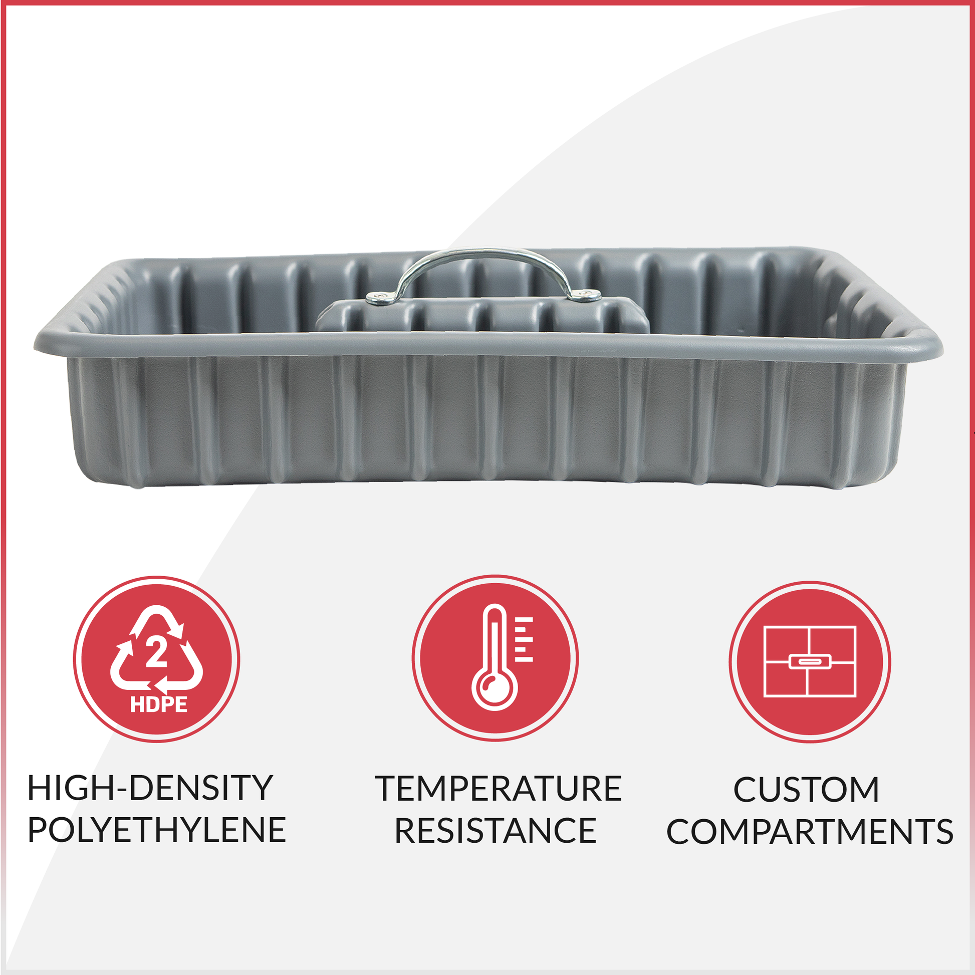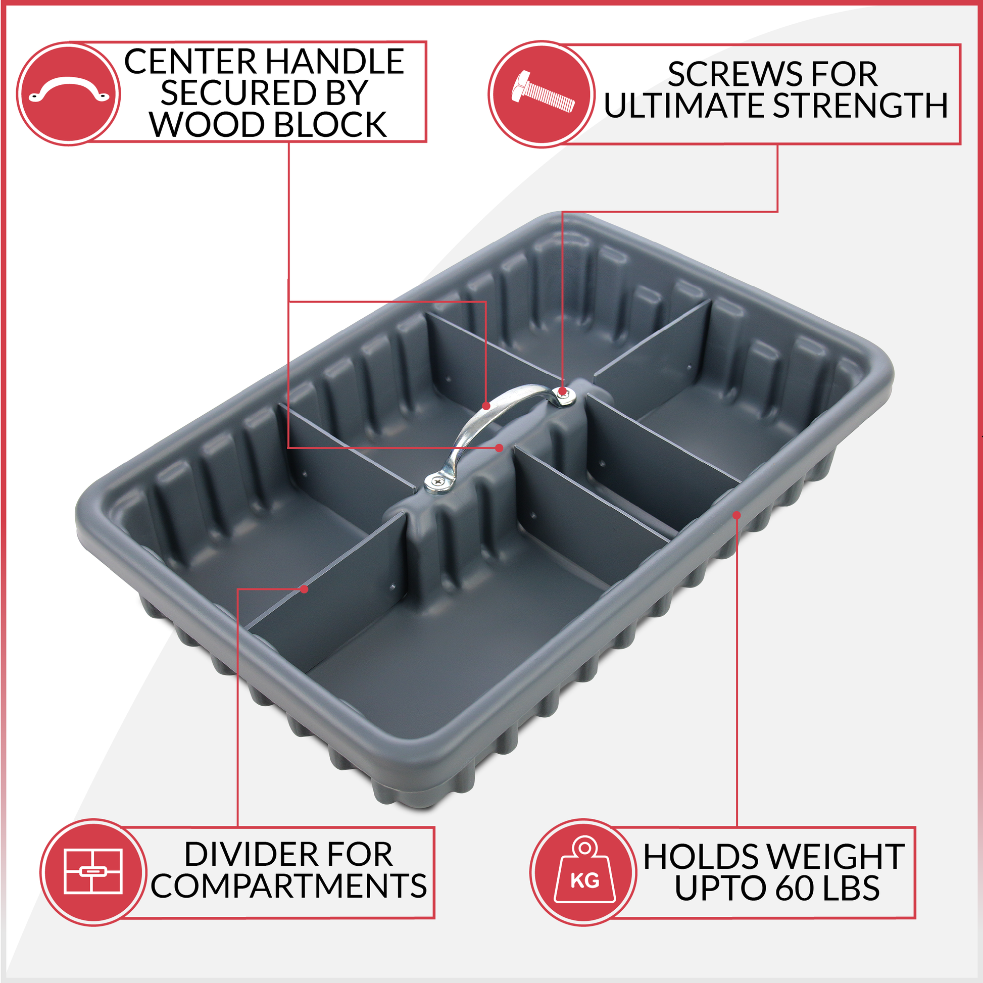 Pro-grade Tote/tool Tray 16.5"x11"x3" with set of 6 Dividers, HDPE with reinforced handles , Gray (10-pk)